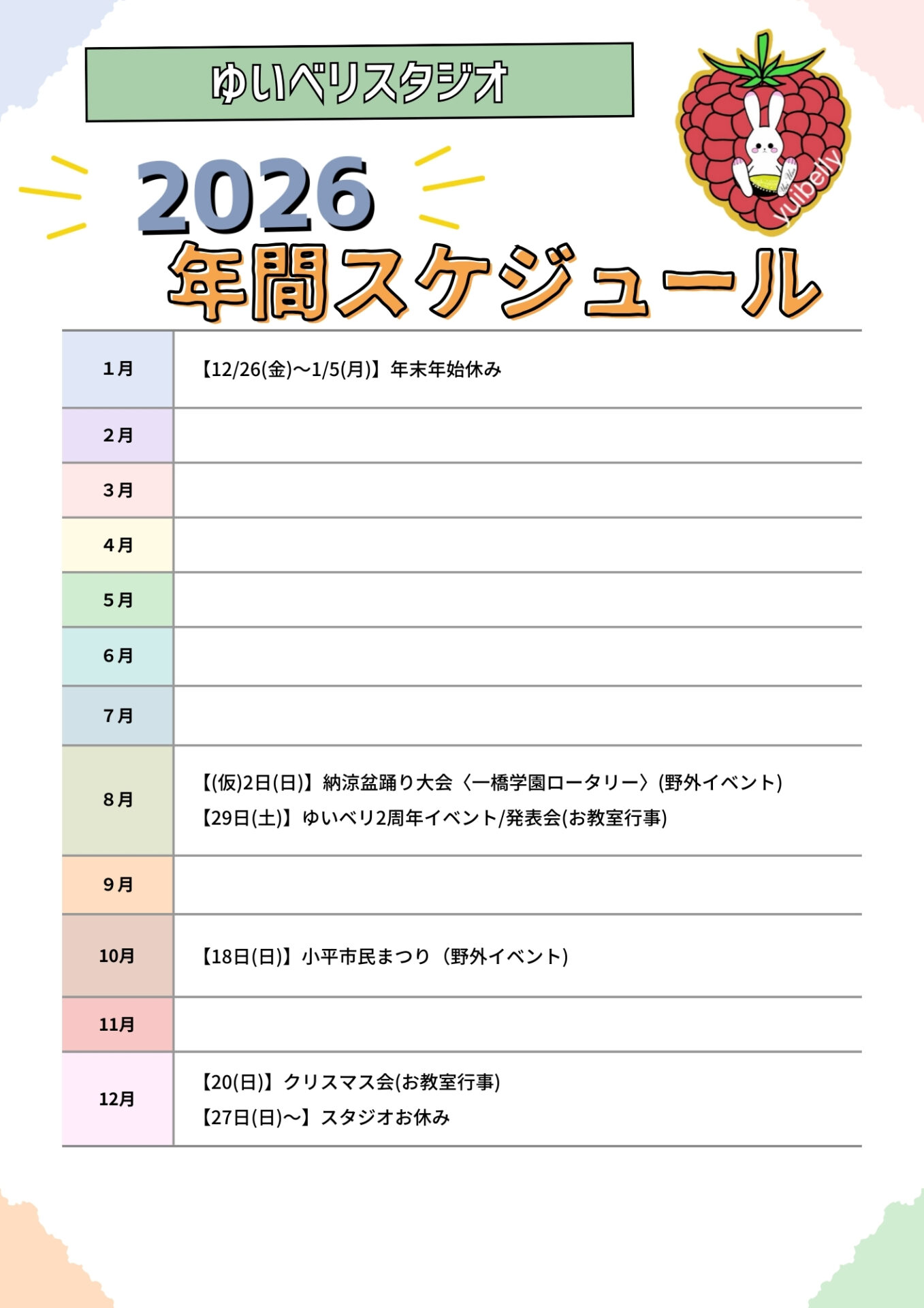 2026年年間スケジュール